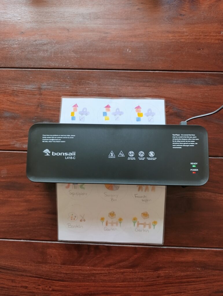 - Symbole malen oder drucken: Jüngere Kinder können mit einfachen Symbolen wie einer Zahnbürste, einem Buch, einem Teller oder einem Turnschuh ihre Woche bildlich verstehen. Lasst eure Kinder eigene Bilder malen oder nutzt Vorlagen aus dem Internet, die ihr ausdruckt. Diese können laminiert und immer wieder verwendet werden. Falls du noch ein Laminiergerät brauchst, kann ich dir dieses von Herzen empfehlen.*